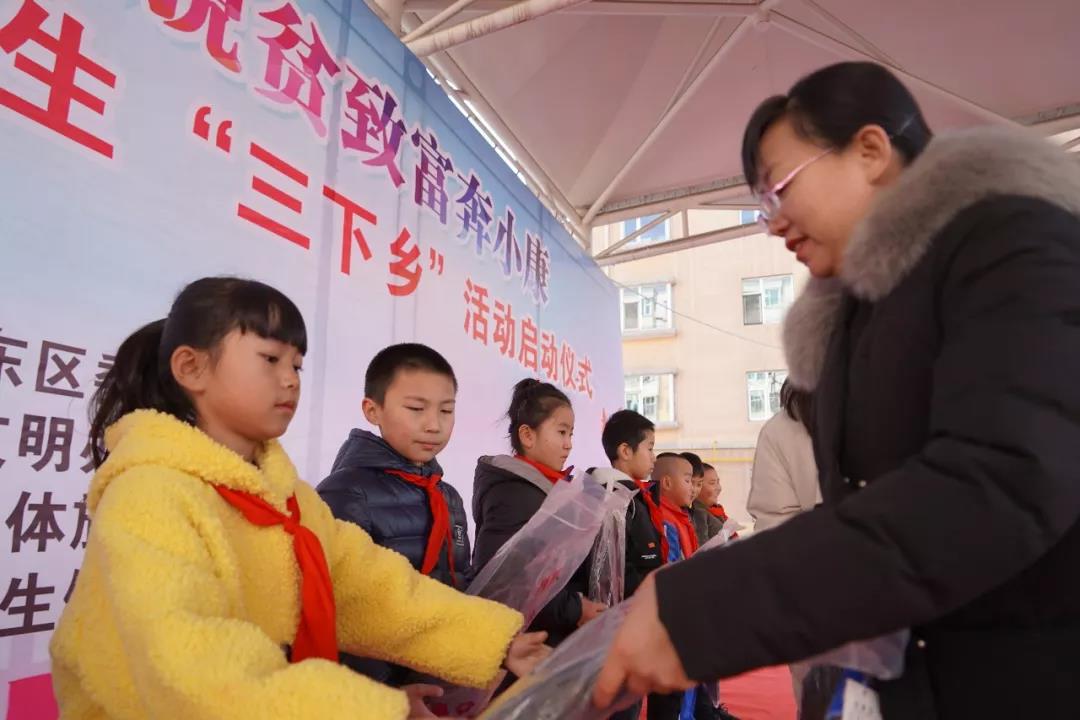 活动中,何启振同志发表了热情洋溢的致辞。他表示,近年来,城东区以习近平新时代中国特色社会主义思想为指导,牢固树立“四个意识”,不断坚定“四个自信”,坚决做到“两个维护”,结合“不忘初心、牢记使命”主题教育,把实施乡村振兴战略作为重大政治任务,常下乡、常在乡,开展志愿服务,推进乡村振兴,助力精准扶贫,引领文明乡风,努力为广大农民群众提供更具针对性、更加喜闻乐见的文化科技卫生服务,深入开展接地气、有生气、有活力的文明实践活动。2020年是打赢脱贫攻坚战、全面建成小康社会和“十三五”规划收官之年,站在“两个一百年”奋斗目标的历史交汇点上,要深入贯彻落实习近平新时代中国特色社会主义思想和党的十九届四中全会精神,把开展“三下乡”和文化进万家活动继续作为营造文明乡风、淳朴民风、良好家风的有力抓手,与移风易俗、新时代文明实践活动紧密结合,广泛开展惠民、为民、乐民的各项服务,补齐农民群众“精神短板”,呼应百姓期盼,把温暖送到农村,把欢乐送进基层,把健康送给农民,切实帮助农民群众增强致富本领,不断提升广大农民群众的获得感、幸福感。