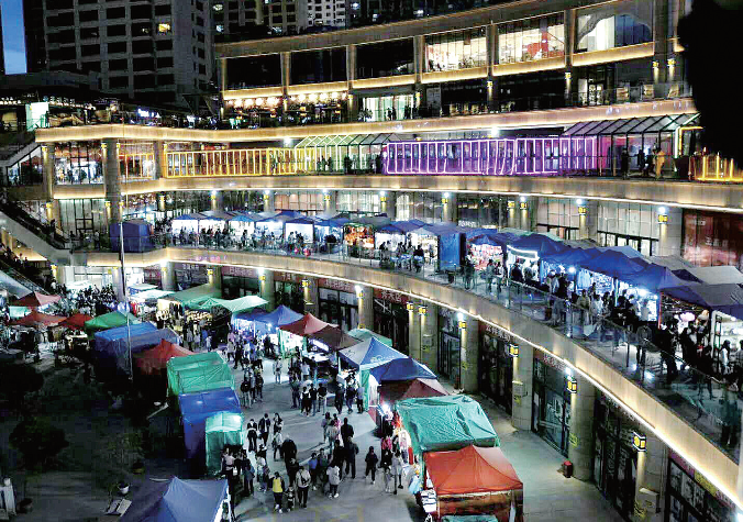 夜市上不仅小吃品类繁多,就餐环境不断提升,消费者还能够逛逛三层室外活动摊位区,挑选一些自己的心水之物。