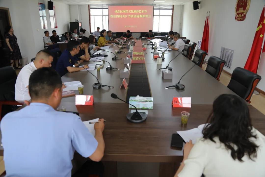 7月5日下午,城东区召开河湟文化旅游艺术节暨第四届美食节工作安排协调会,活动领导小组成员单位和各承办、协办单位主要负责人参加会议,区政府副区长杨光出席会议并讲话。