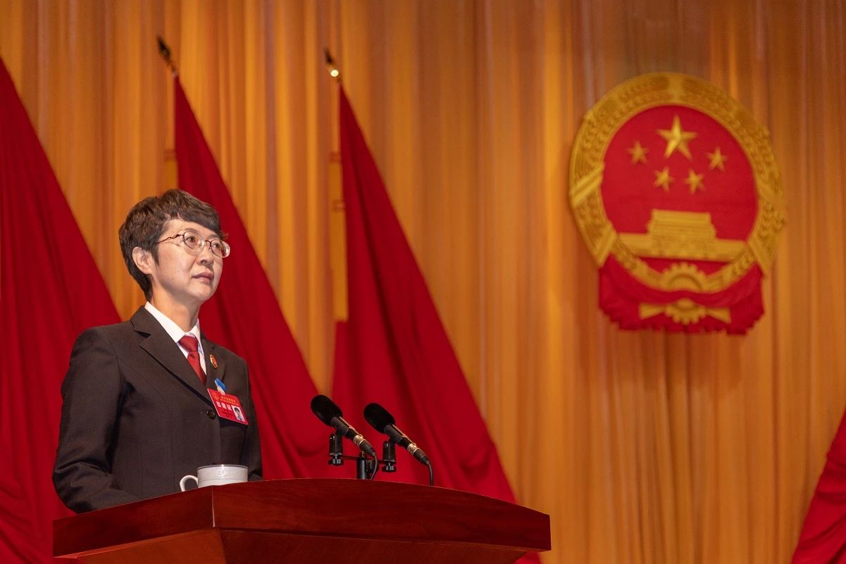 受区十九届人大常委会委托,宋红梅主任向大会报告工作